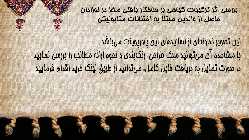پاورپوینت کامل بررسی اثر ترکیبات گیاهی بر ساختار بافتی مغز در نوزادان حاصل از والدین مبتلا به اختلالات متابولیکی