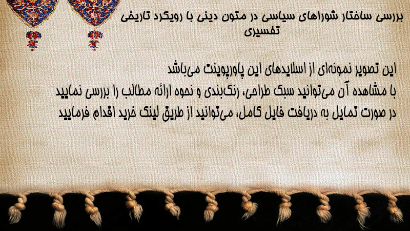 پاورپوینت کامل بررسی ساختار شوراهای سیاسی در متون دینی با رویکرد تاریخی تفسیری