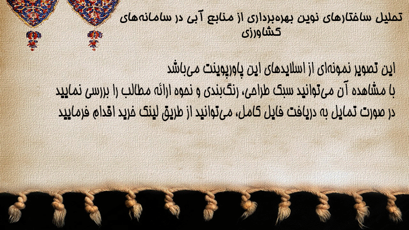 پاورپوینت کامل تحلیل ساختارهای نوین بهرهبرداری از منابع آبی در سامانههای کشاورزی