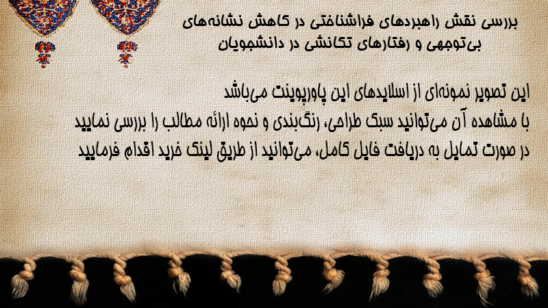 پاورپوینت کامل بررسی نقش راهبردهای فراشناختی در کاهش نشانههای بیتوجهی و رفتارهای تکانشی در دانشجویان