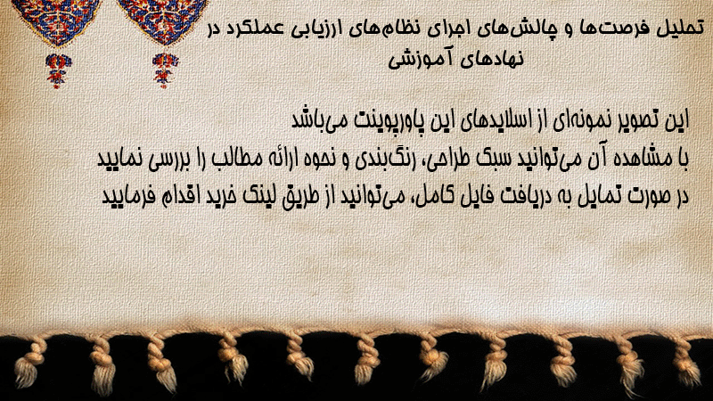پاورپوینت کامل تحلیل فرصتها و چالشهای اجرای نظامهای ارزیابی عملکرد در نهادهای آموزشی
