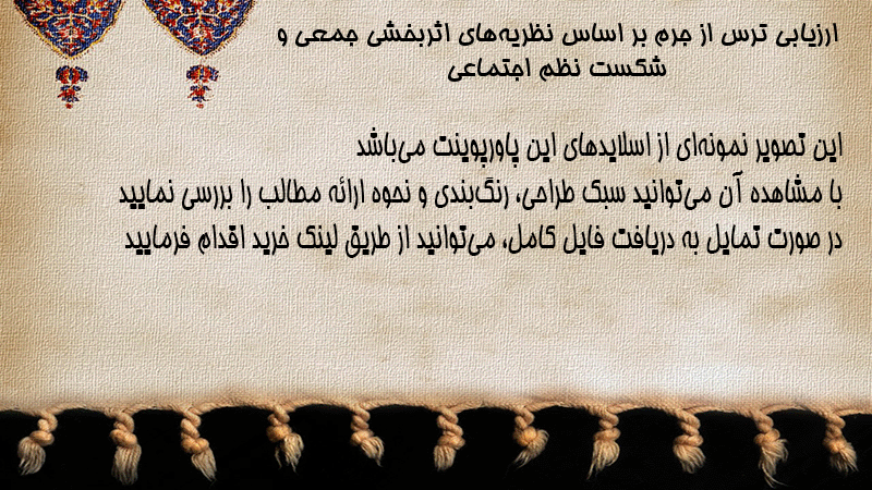 پاورپوینت کامل ارزیابی ترس از جرم بر اساس نظریههای اثربخشی جمعی و شکست نظم اجتماعی