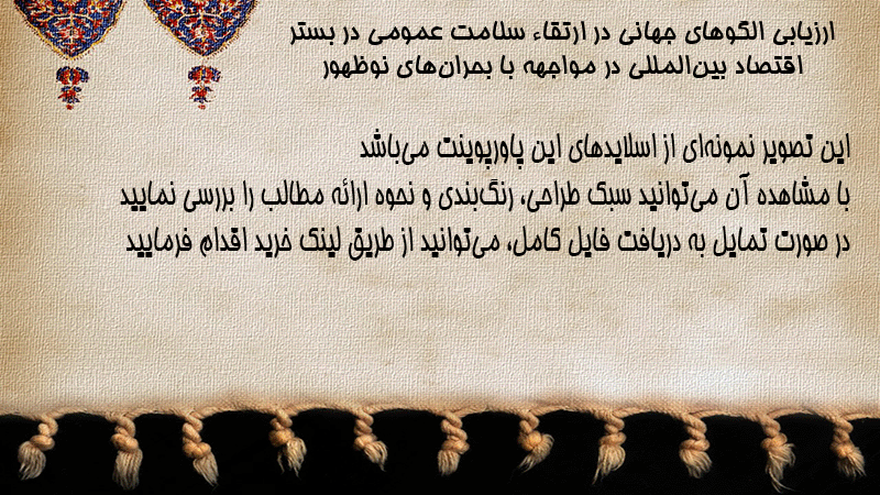 پاورپوینت کامل ارزیابی الگوهای جهانی در ارتقاء سلامت عمومی در بستر اقتصاد بینالمللی در مواجهه با بحرانهای نوظهور