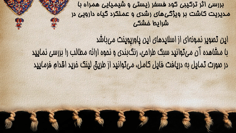 پاورپوینت کامل بررسی اثر ترکیبی کود فسفر زیستی و شیمیایی همراه با مدیریت کاشت بر ویژگیهای رشدی و عملکرد گیاه دارویی در شرایط خشکی
