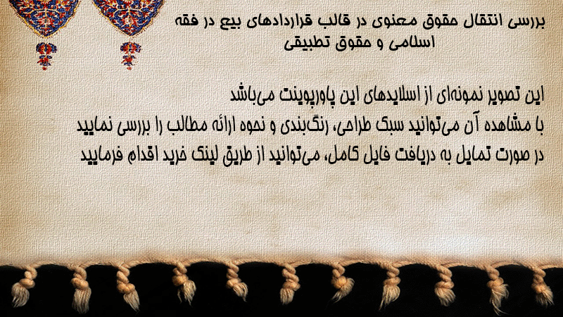 پاورپوینت کامل بررسی انتقال حقوق معنوی در قالب قراردادهای بیع در فقه اسلامی و حقوق تطبیقی