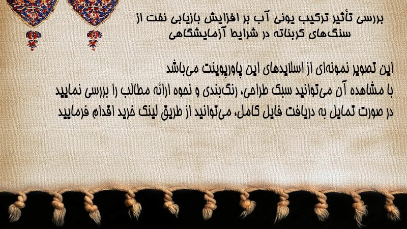 پاورپوینت کامل بررسی تأثیر ترکیب یونی آب بر افزایش بازیابی نفت از سنگهای کربناته در شرایط آزمایشگاهی