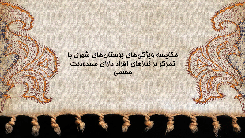 پاورپوینت کامل مقایسه ویژگیهای بوستانهای شهری با تمرکز بر نیازهای افراد دارای محدودیت جسمی