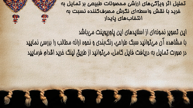 پاورپوینت کامل تحلیل اثر ویژگیهای ارزشی محصولات طبیعی بر تمایل به خرید با نقش واسطهای نگرش مصرفکننده نسبت به انتخابهای پایدار
