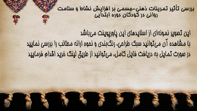پاورپوینت کامل بررسی تأثیر تمرینات ذهنی-جسمی بر افزایش نشاط و سلامت روانی در کودکان دوره ابتدایی