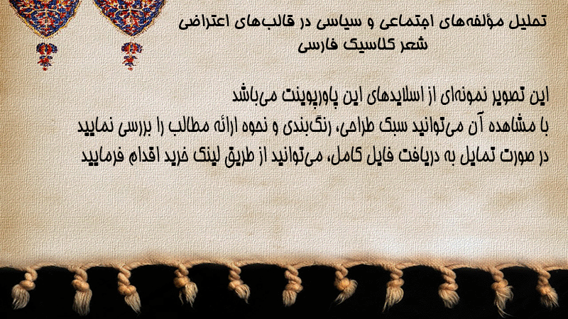 پاورپوینت کامل تحلیل مؤلفههای اجتماعی و سیاسی در قالبهای اعتراضی شعر کلاسیک فارسی