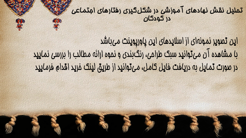 پاورپوینت کامل تحلیل نقش نهادهای آموزشی در شکلگیری رفتارهای اجتماعی در کودکان
