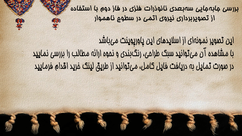 پاورپوینت کامل بررسی جابهجایی سهبعدی نانوذرات فلزی در فاز دوم با استفاده از تصویربرداری نیروی اتمی در سطوح ناهموار