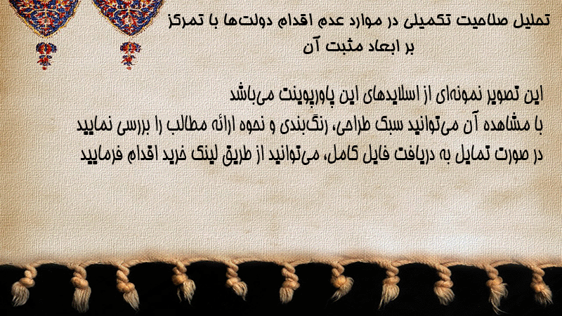 پاورپوینت کامل تحلیل صلاحیت تکمیلی در موارد عدم اقدام دولتها با تمرکز بر ابعاد مثبت آن
