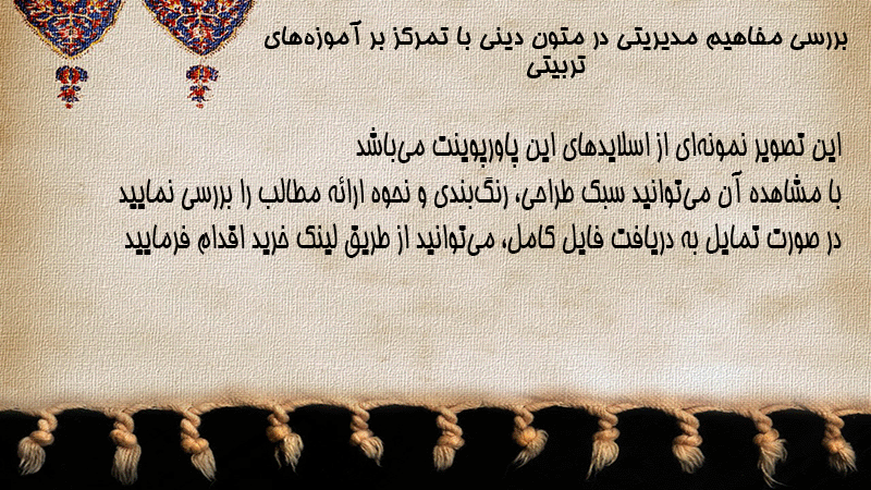 پاورپوینت کامل بررسی مفاهیم مدیریتی در متون دینی با تمرکز بر آموزههای تربیتی