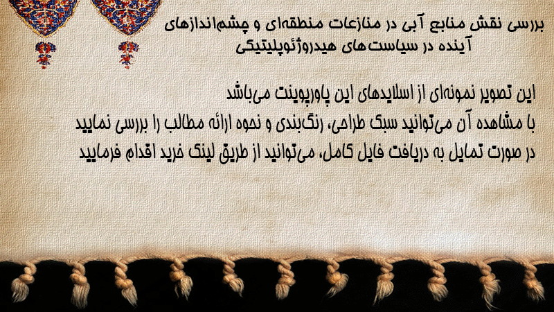 پاورپوینت کامل بررسی نقش منابع آبی در منازعات منطقهای و چشماندازهای آینده در سیاستهای هیدروژئوپلیتیکی