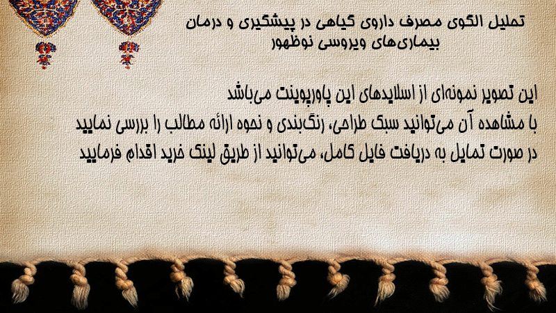 پاورپوینت کامل تحلیل الگوی مصرف داروی گیاهی در پیشگیری و درمان بیماریهای ویروسی نوظهور