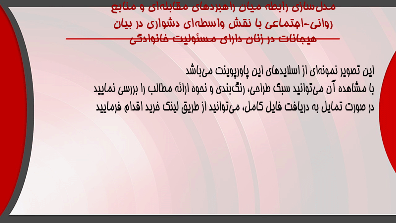 پاورپوینت کامل مدلسازی رابطه میان راهبردهای مقابلهای و منابع روانی-اجتماعی با نقش واسطهای دشواری در بیان هیجانات در زنان دارای مسئولیت خانوادگی