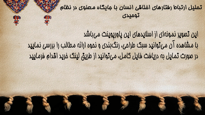 پاورپوینت کامل تحلیل ارتباط رفتارهای اخلاقی انسان با جایگاه معنوی در نظام توحیدی