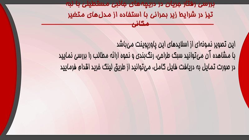 پاورپوینت کامل بررسی رفتار جریان در دریچههای جانبی مستطیلی با لبه تیز در شرایط زیر بحرانی با استفاده از مدلهای متغیر مکانی