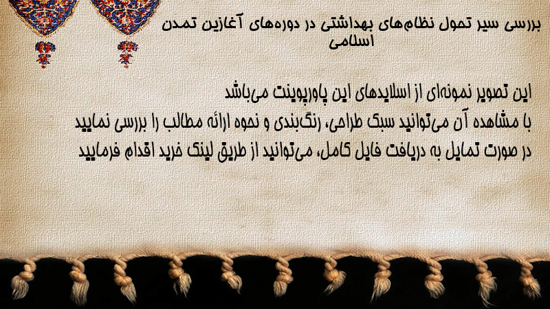 پاورپوینت کامل بررسی سیر تحول نظامهای بهداشتی در دورههای آغازین تمدن اسلامی