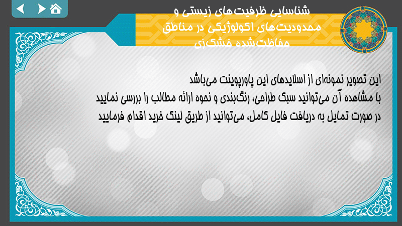 پاورپوینت کامل شناسایی ظرفیتهای زیستی و محدودیتهای اکولوژیکی در مناطق حفاظتشده خشکزی