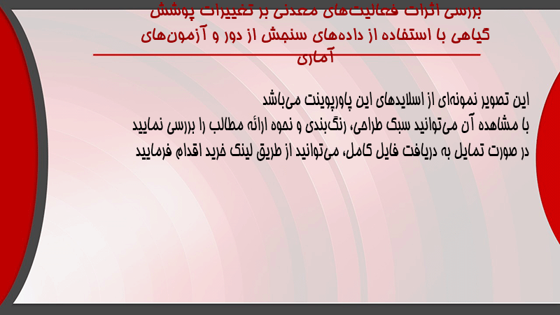 پاورپوینت کامل بررسی اثرات فعالیتهای معدنی بر تغییرات پوشش گیاهی با استفاده از دادههای سنجش از دور و آزمونهای آماری
