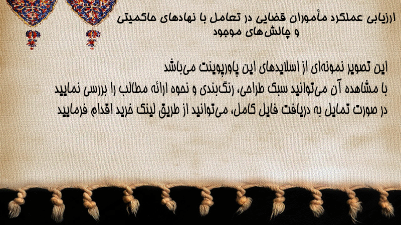 پاورپوینت کامل ارزیابی عملکرد مأموران قضایی در تعامل با نهادهای حاکمیتی و چالشهای موجود