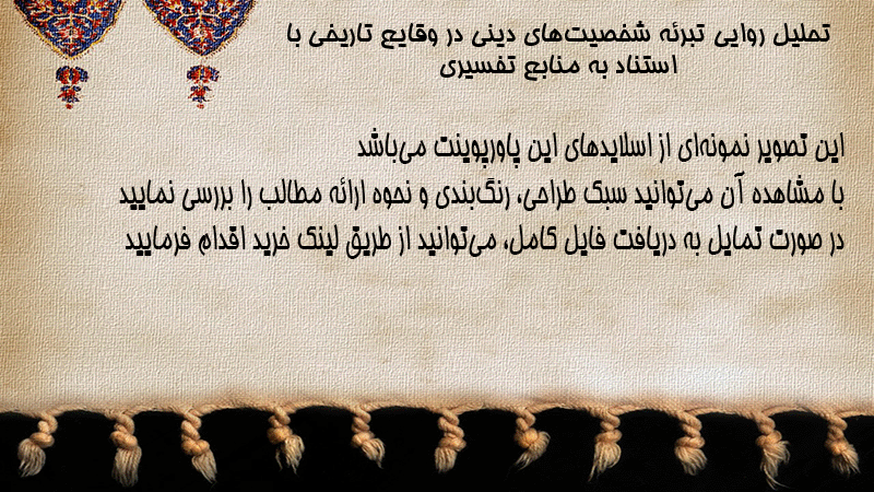 پاورپوینت کامل تحلیل روایی تبرئه شخصیتهای دینی در وقایع تاریخی با استناد به منابع تفسیری