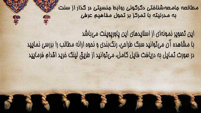 پاورپوینت کامل مطالعه جامعهشناختی دگرگونی روابط جنسیتی در گذار از سنت به مدرنیته با تمرکز بر تحول مفاهیم عرفی