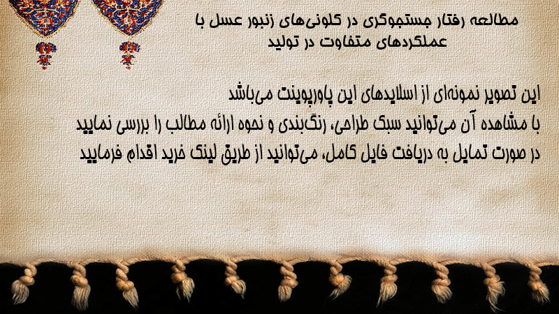 پاورپوینت کامل مطالعه رفتار جستجوگری در کلونیهای زنبور عسل با عملکردهای متفاوت در تولید