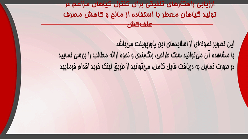 پاورپوینت کامل ارزیابی راهکارهای تلفیقی برای کنترل گیاهان مزاحم در تولید گیاهان معطر با استفاده از مالچ و کاهش مصرف علفکش