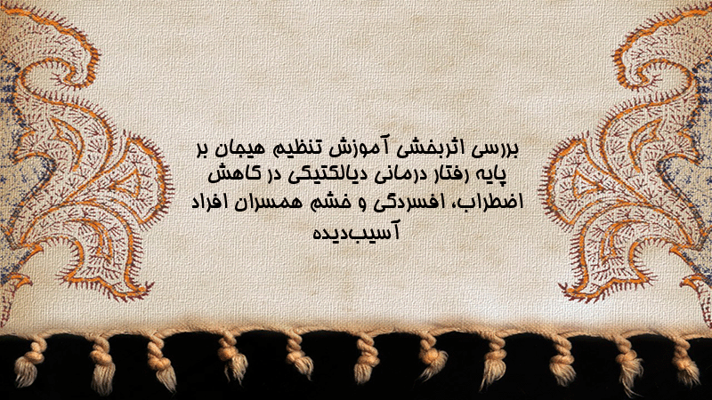 پاورپوینت کامل بررسی اثربخشی آموزش تنظیم هیجان بر پایه رفتار درمانی دیالکتیکی در کاهش اضطراب، افسردگی و خشم همسران افراد آسیبدیده