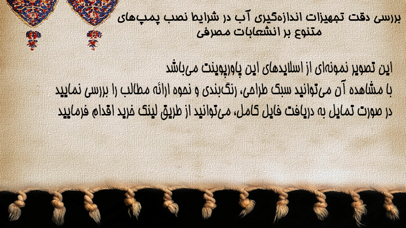پاورپوینت کامل بررسی دقت تجهیزات اندازهگیری آب در شرایط نصب پمپهای متنوع بر انشعابات مصرفی