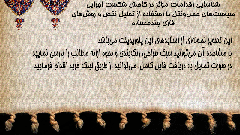 پاورپوینت کامل شناسایی اقدامات مؤثر در کاهش شکست اجرایی سیاستهای حملونقل با استفاده از تحلیل نقص و روشهای فازی چندمعیاره