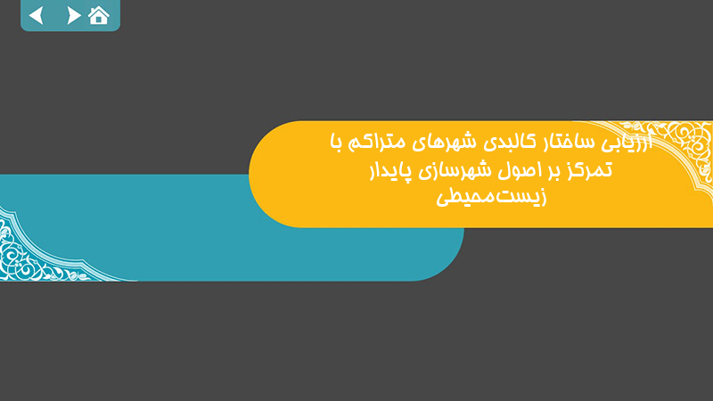 پاورپوینت کامل ارزیابی ساختار کالبدی شهرهای متراکم با تمرکز بر اصول شهرسازی پایدار زیستمحیطی