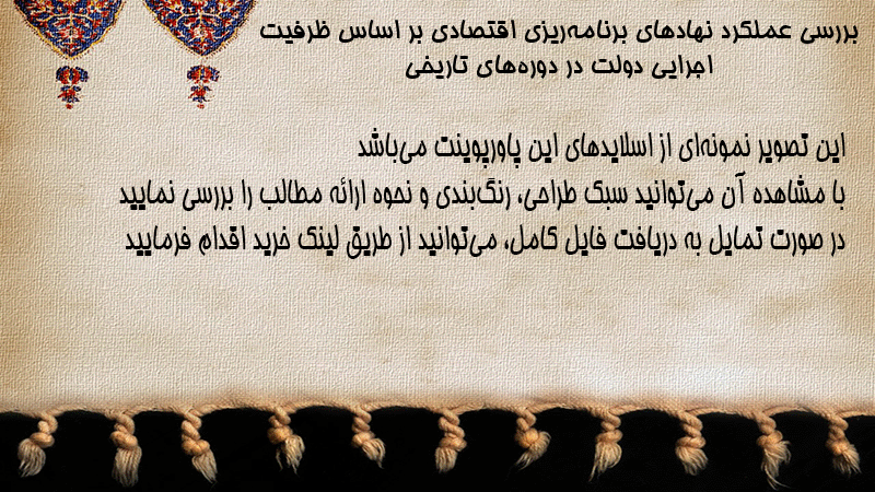 پاورپوینت کامل بررسی عملکرد نهادهای برنامهریزی اقتصادی بر اساس ظرفیت اجرایی دولت در دورههای تاریخی