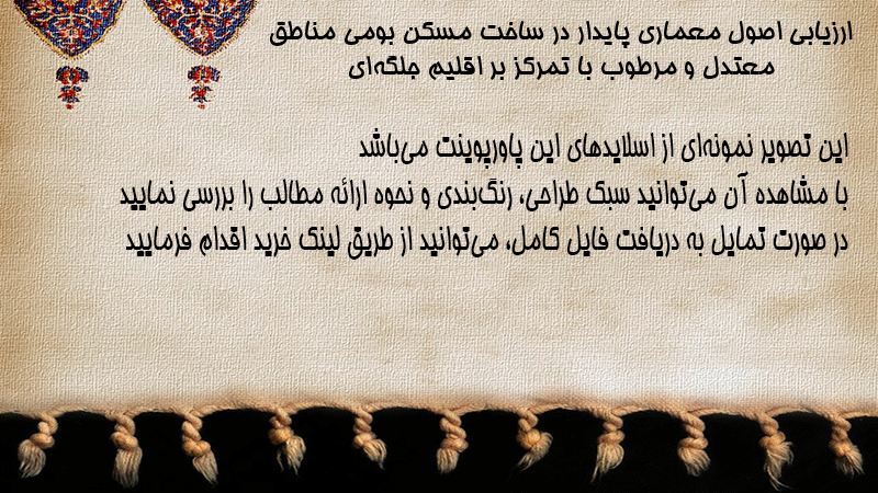 پاورپوینت کامل ارزیابی اصول معماری پایدار در ساخت مسکن بومی مناطق معتدل و مرطوب با تمرکز بر اقلیم جلگهای