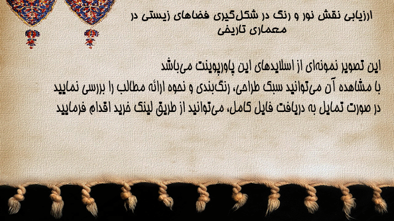 پاورپوینت کامل ارزیابی نقش نور و رنگ در شکلگیری فضاهای زیستی در معماری تاریخی