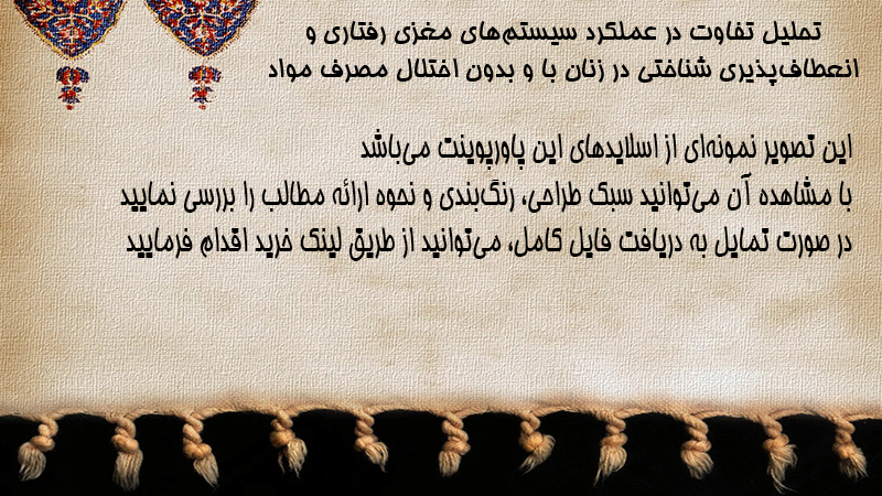 پاورپوینت کامل تحلیل تفاوت در عملکرد سیستمهای مغزی رفتاری و انعطافپذیری شناختی در زنان با و بدون اختلال مصرف مواد