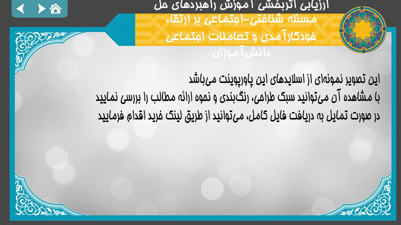 پاورپوینت کامل ارزیابی اثربخشی آموزش راهبردهای حل مسئله شناختی-اجتماعی بر ارتقاء خودکارآمدی و تعاملات اجتماعی دانشآموزان