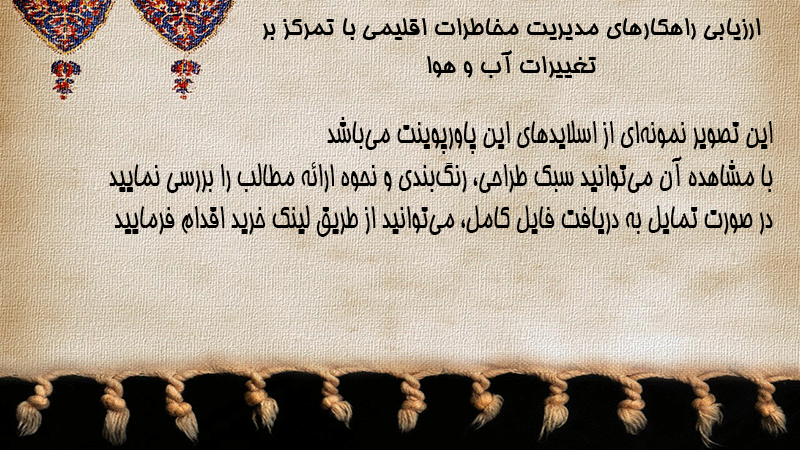 پاورپوینت کامل ارزیابی راهکارهای مدیریت مخاطرات اقلیمی با تمرکز بر تغییرات آب و هوا