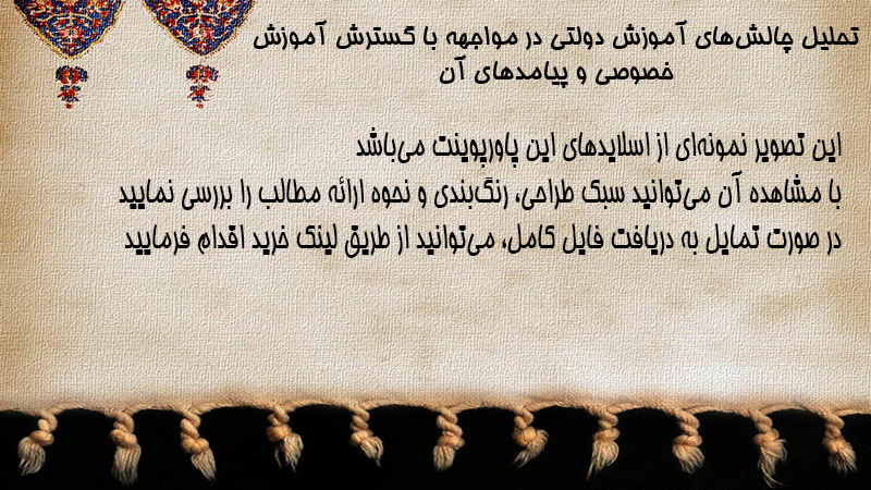 پاورپوینت کامل تحلیل چالشهای آموزش دولتی در مواجهه با گسترش آموزش خصوصی و پیامدهای آن