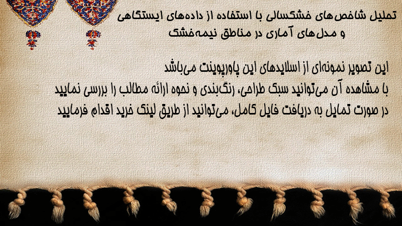 پاورپوینت کامل تحلیل شاخصهای خشکسالی با استفاده از دادههای ایستگاهی و مدلهای آماری در مناطق نیمهخشک