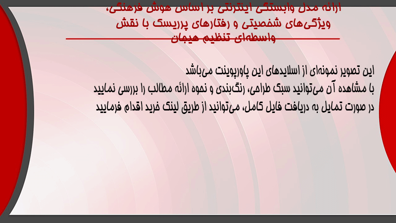 پاورپوینت کامل ارائه مدل وابستگی اینترنتی بر اساس هوش فرهنگی، ویژگیهای شخصیتی و رفتارهای پرریسک با نقش واسطهای تنظیم هیجان