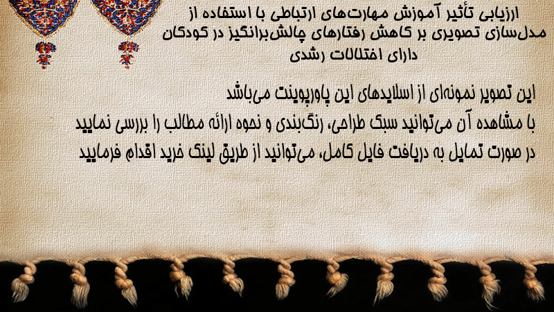 پاورپوینت کامل ارزیابی تأثیر آموزش مهارتهای ارتباطی با استفاده از مدلسازی تصویری بر کاهش رفتارهای چالشبرانگیز در کودکان دارای اختلالات رشدی