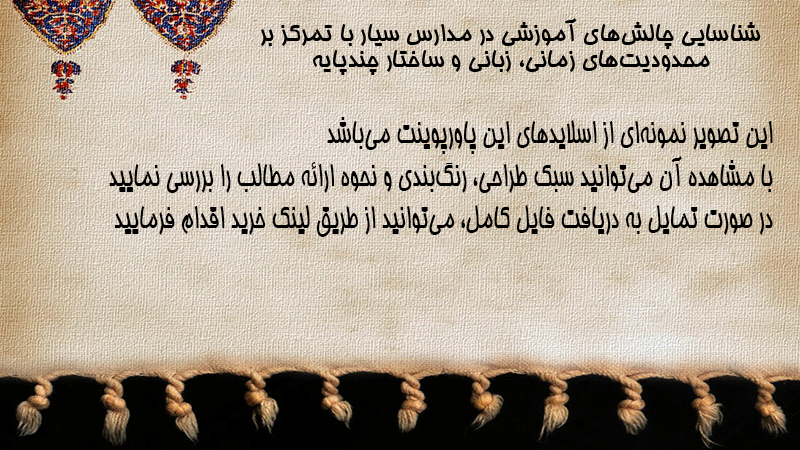 پاورپوینت کامل شناسایی چالشهای آموزشی در مدارس سیار با تمرکز بر محدودیتهای زمانی، زبانی و ساختار چندپایه