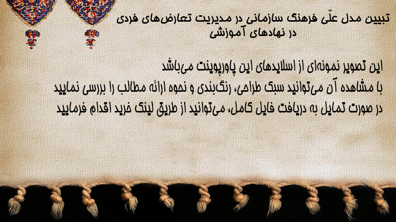 پاورپوینت کامل تبیین مدل علّی فرهنگ سازمانی در مدیریت تعارضهای فردی در نهادهای آموزشی