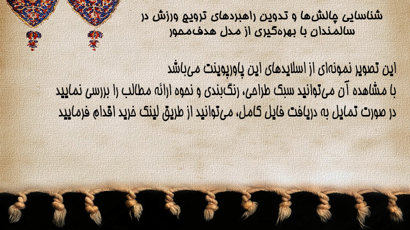 پاورپوینت کامل شناسایی چالشها و تدوین راهبردهای ترویج ورزش در سالمندان با بهرهگیری از مدل هدفمحور