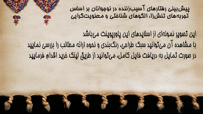 پاورپوینت کامل پیشبینی رفتارهای آسیبزننده در نوجوانان بر اساس تجربههای تنشزا، الگوهای شناختی و معنویتگرایی