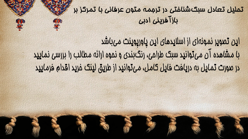 پاورپوینت کامل تحلیل تعادل سبکشناختی در ترجمه متون عرفانی با تمرکز بر بازآفرینی ادبی